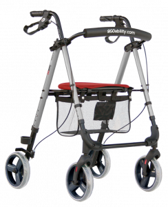 Excel G-Logic Lightweight Transit Wheelchair Silver Frame Red and Black Upholstery 18″ Seat