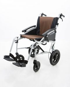 Excel G-Logic Lightweight Transit Wheelchair Silver Frame Brown and Black Upholstery 20″ Seat