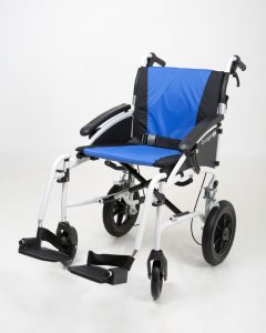 It has a half folding backrest and swing away removable footrests which all contribute to is very small transport size and weight. Making it an ideal choice of Lightweight Wheelchair for every day or occasional use.