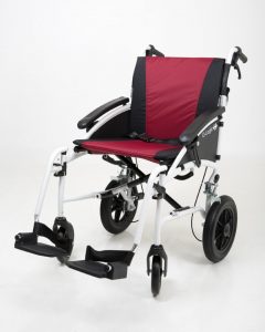 Excel G-Logic Lightweight Transit Wheelchair White Frame Red and Black Upholstery 16″ Seat